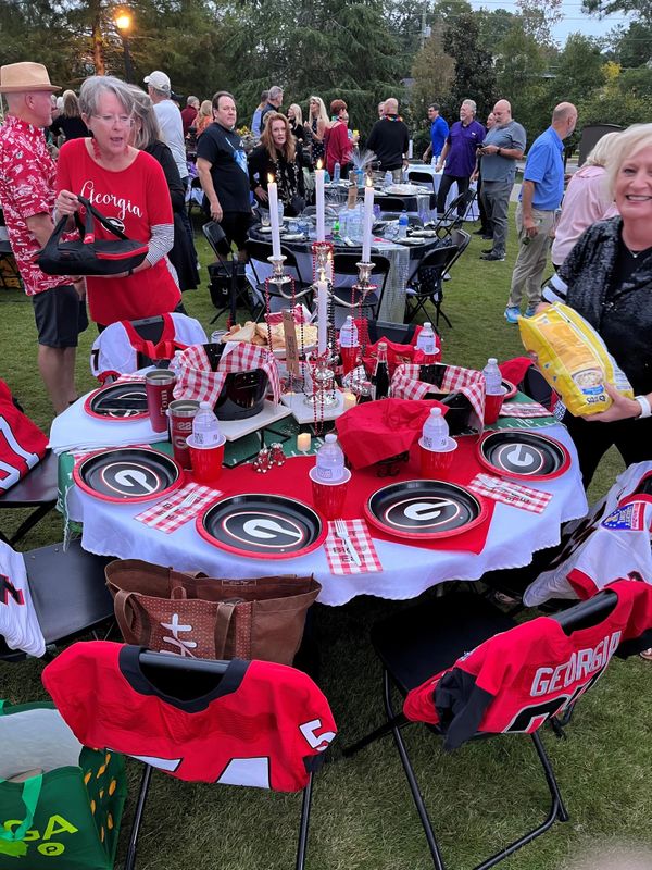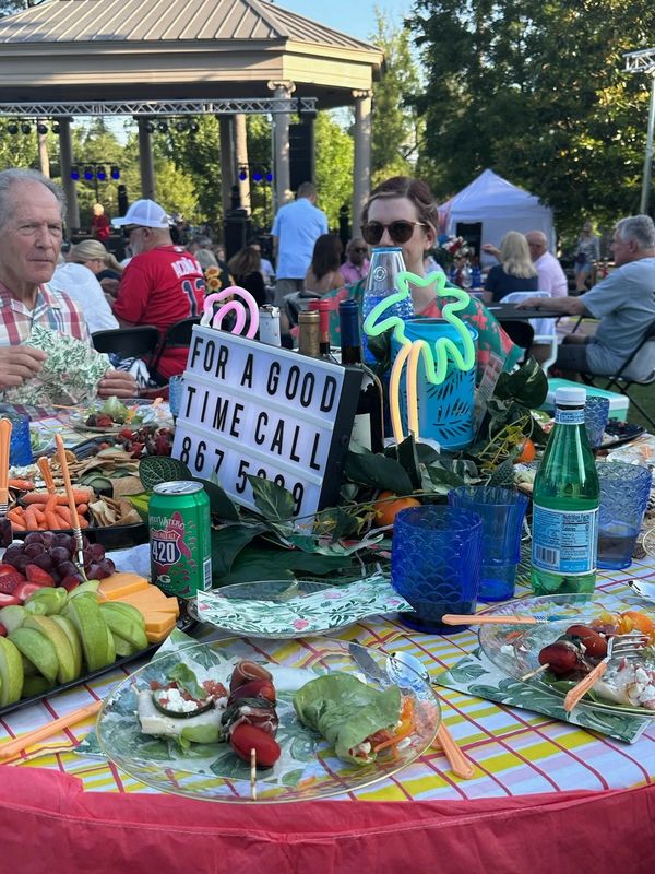 The concerts are held at Brooke Street Park, Downtown Alpharetta. Tables with chairs for 8 are provided. Please bring your own table decorations, food, alcohol, and other decorative items. We always have a winner for best decorated table!